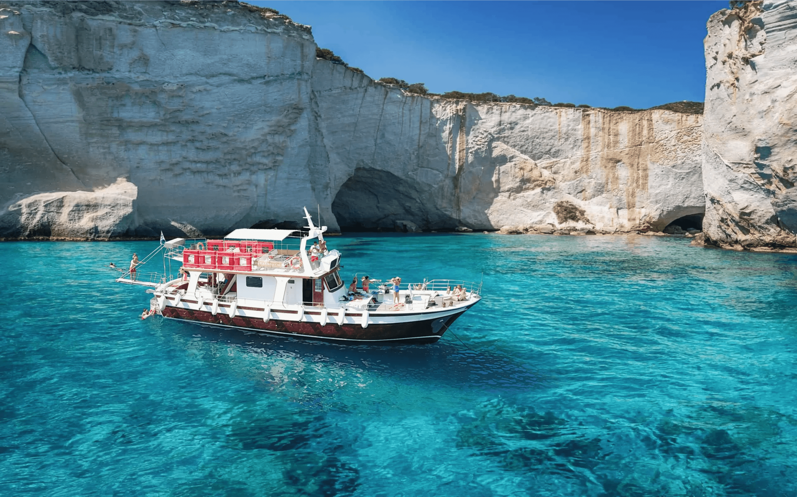 Here at Zefiros we offer unforgettable half-day tours around Milos. Explore hidden beaches, swim in clear waters, and take in the beautiful scenery. Join us for a relaxing adventure and make lasting memories discovering the south side of Milos!